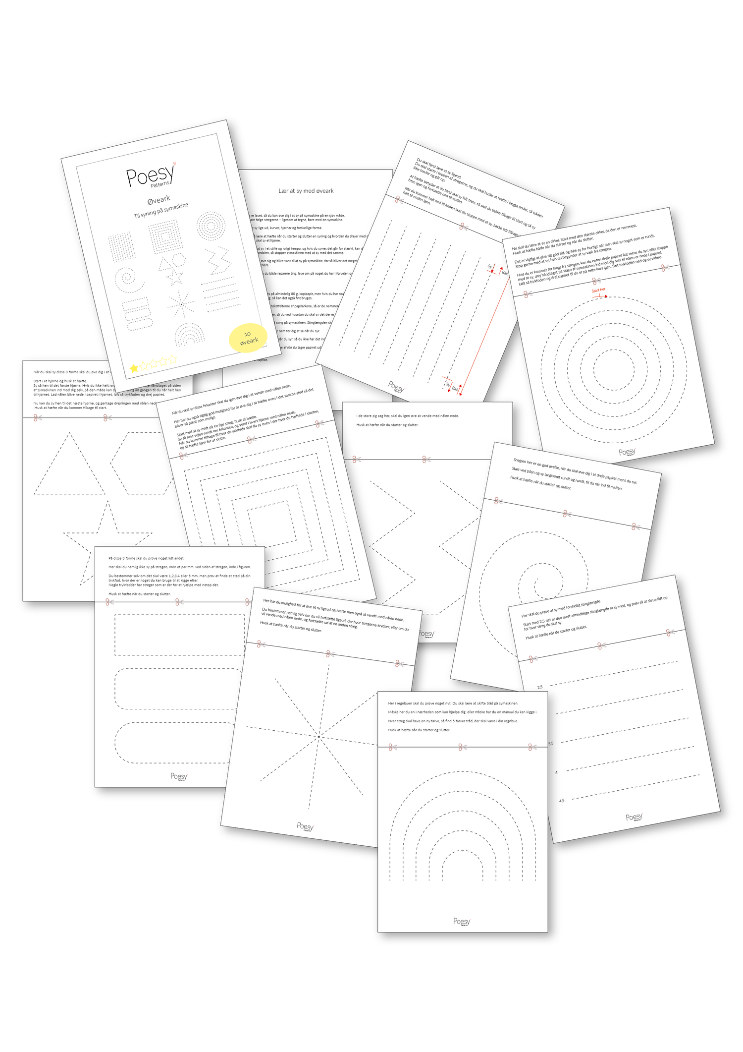 Disse ark er lavet, så du kan øve dig i at sy på symaskine på en sjov måde.