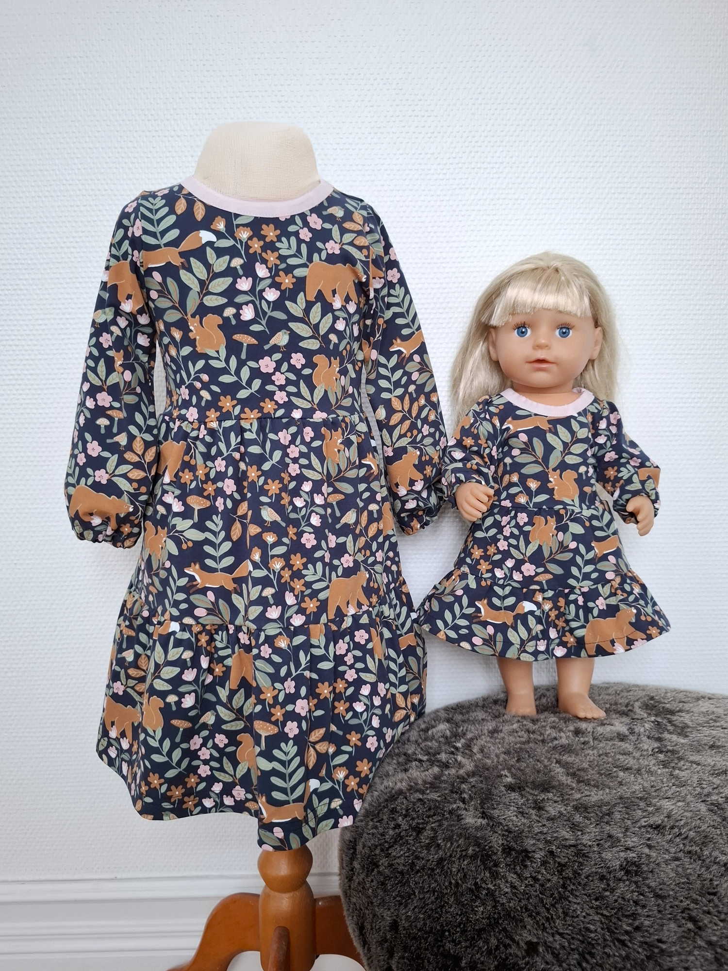 Mange af modellerne findes også til børn, så du har mulighed for at sy matchende sæt til pigen og hendes dukke. Dukketøjet er i nogle tilfælde forenklet lidt, da nogle detaljer kan være svære at sy, i så små størrelser.