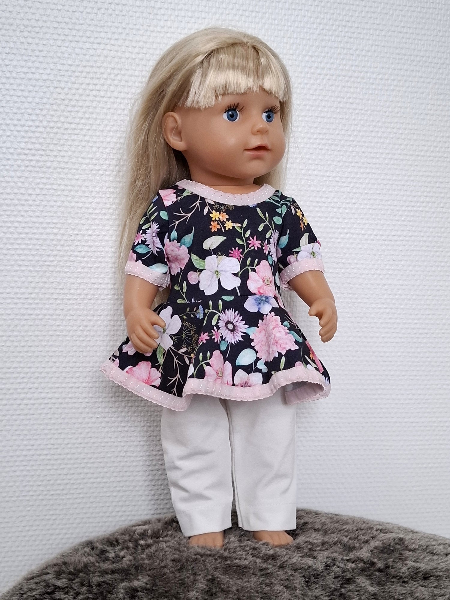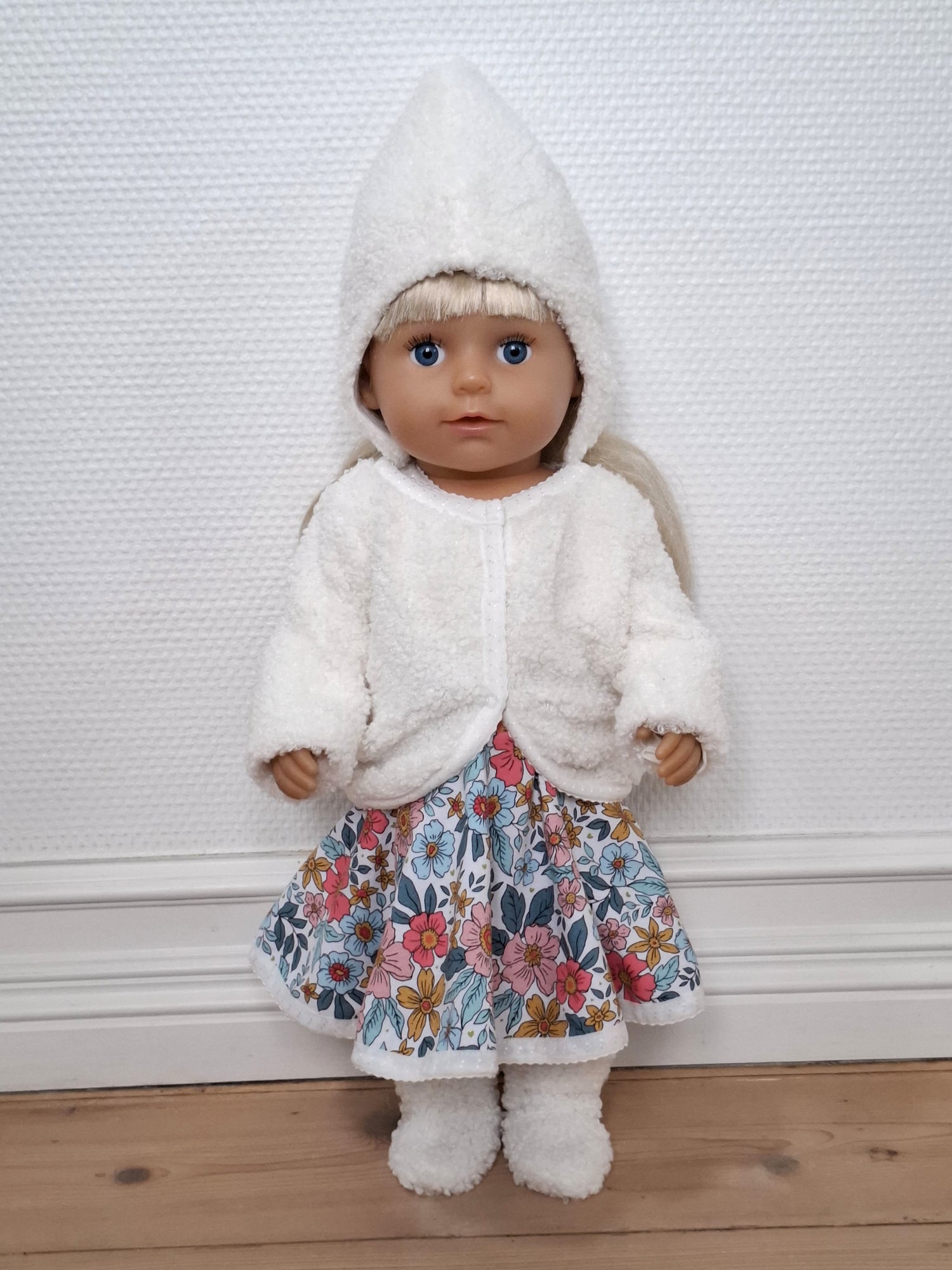 Dukketøjet passer til en dukke som er ca 42-45 cm høj.