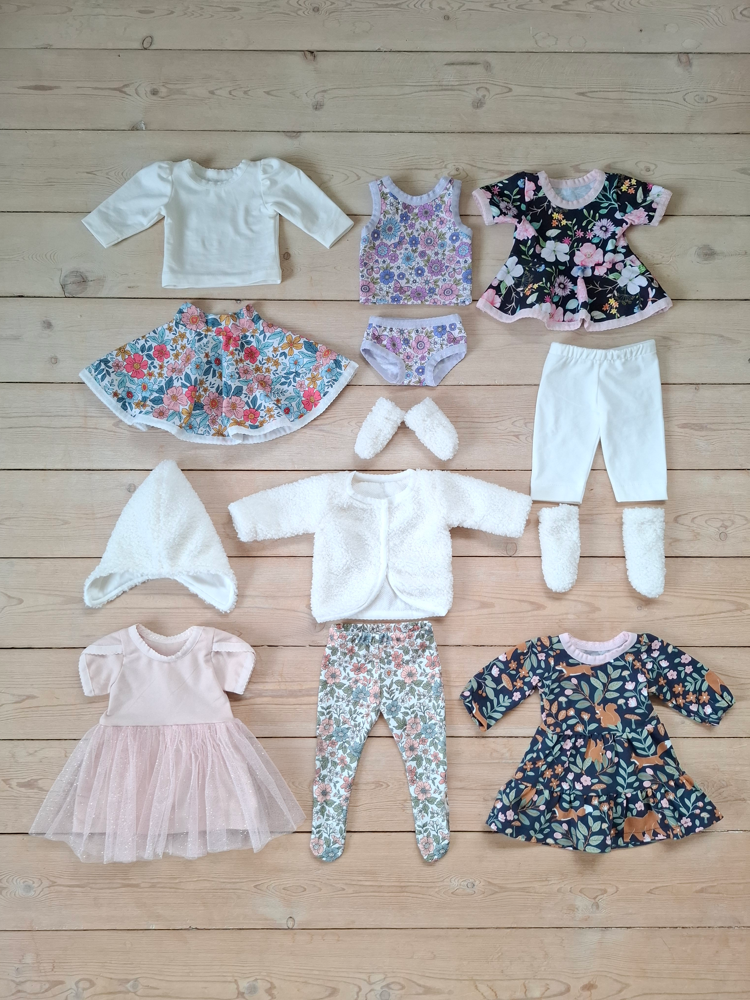 Med dette symønster kan du sy en hel ny garderobe til yndlingsdukken.
