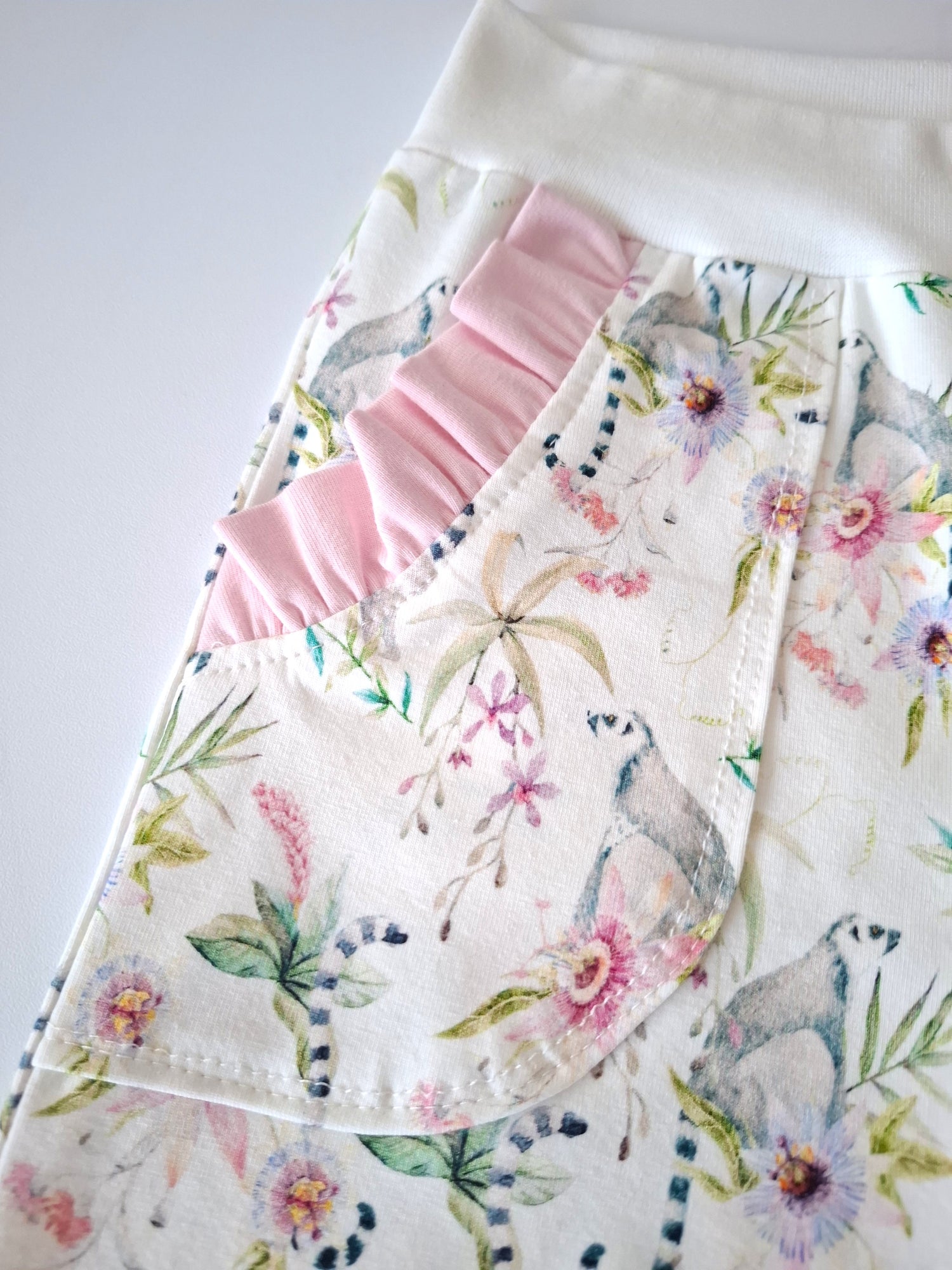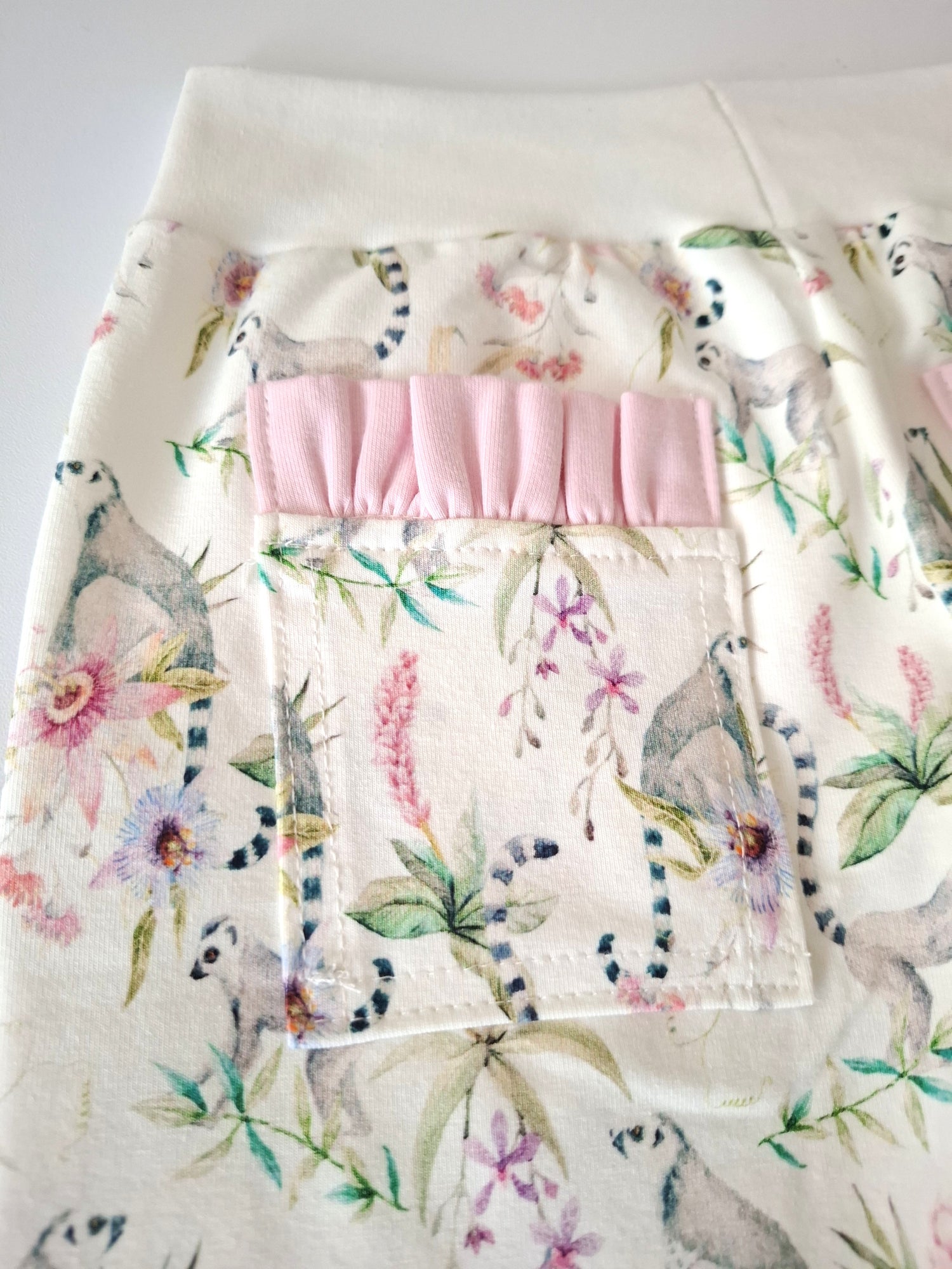 Bukserne kan laves med og uden sidesøm, og mønsteret kan deles i 3 så man nemt kan sy bukserne i forskelligt stof, hvilket giver en flot effekt.