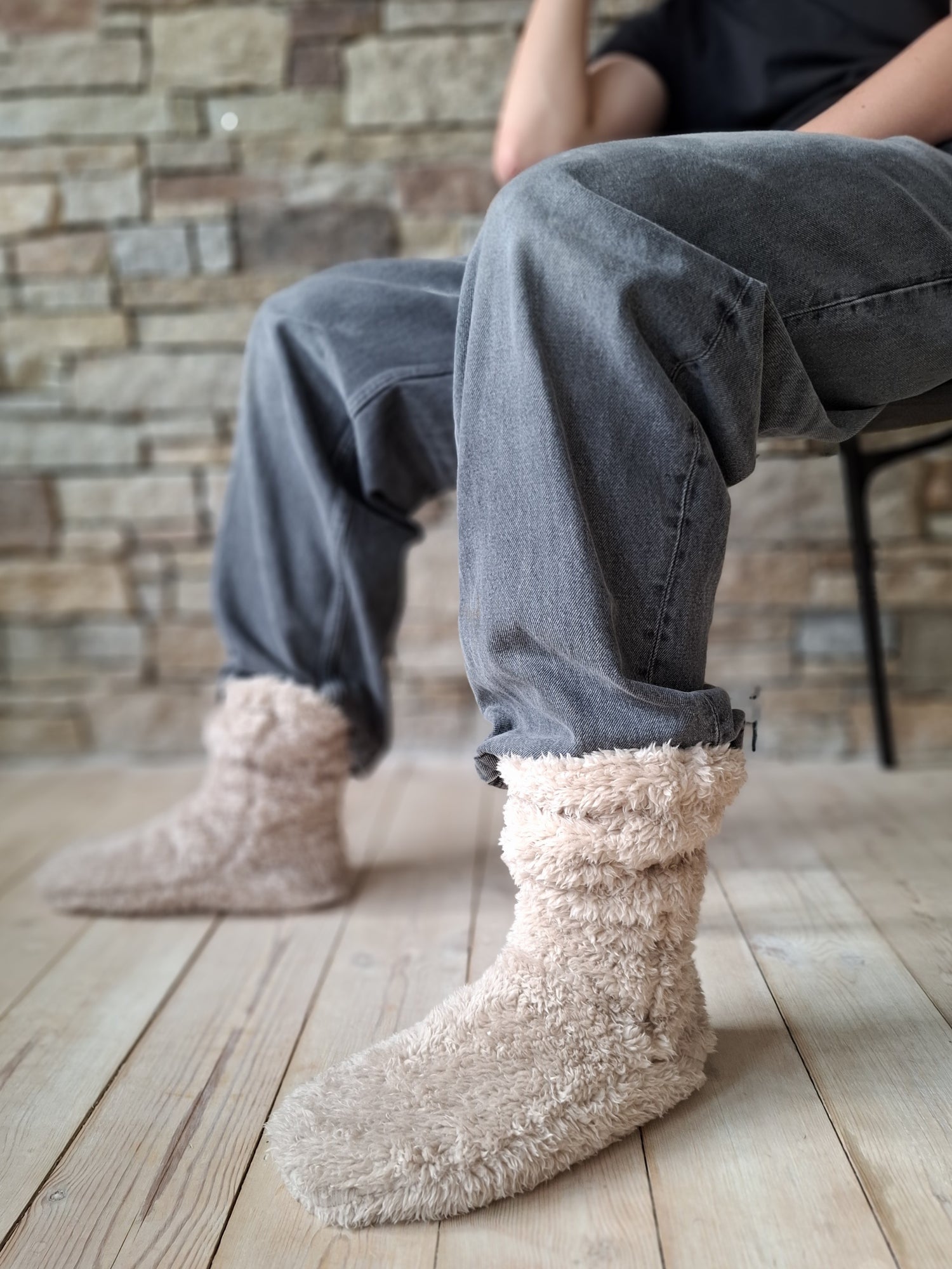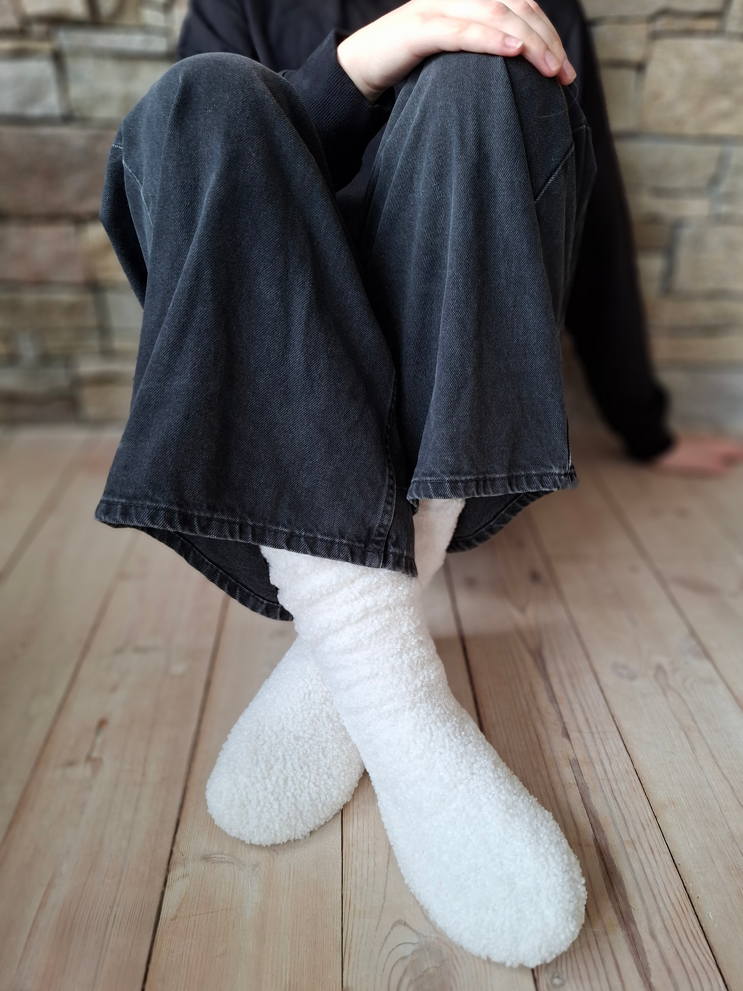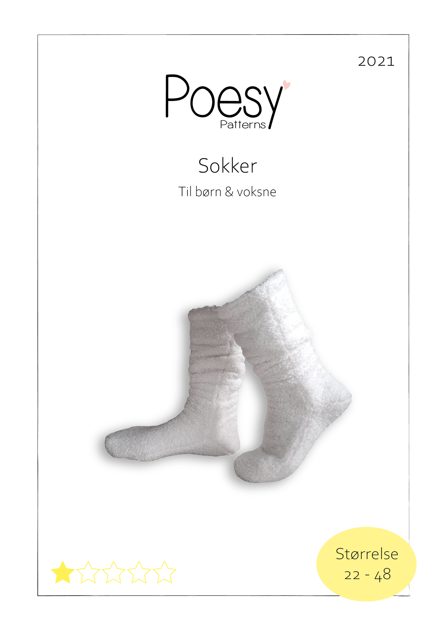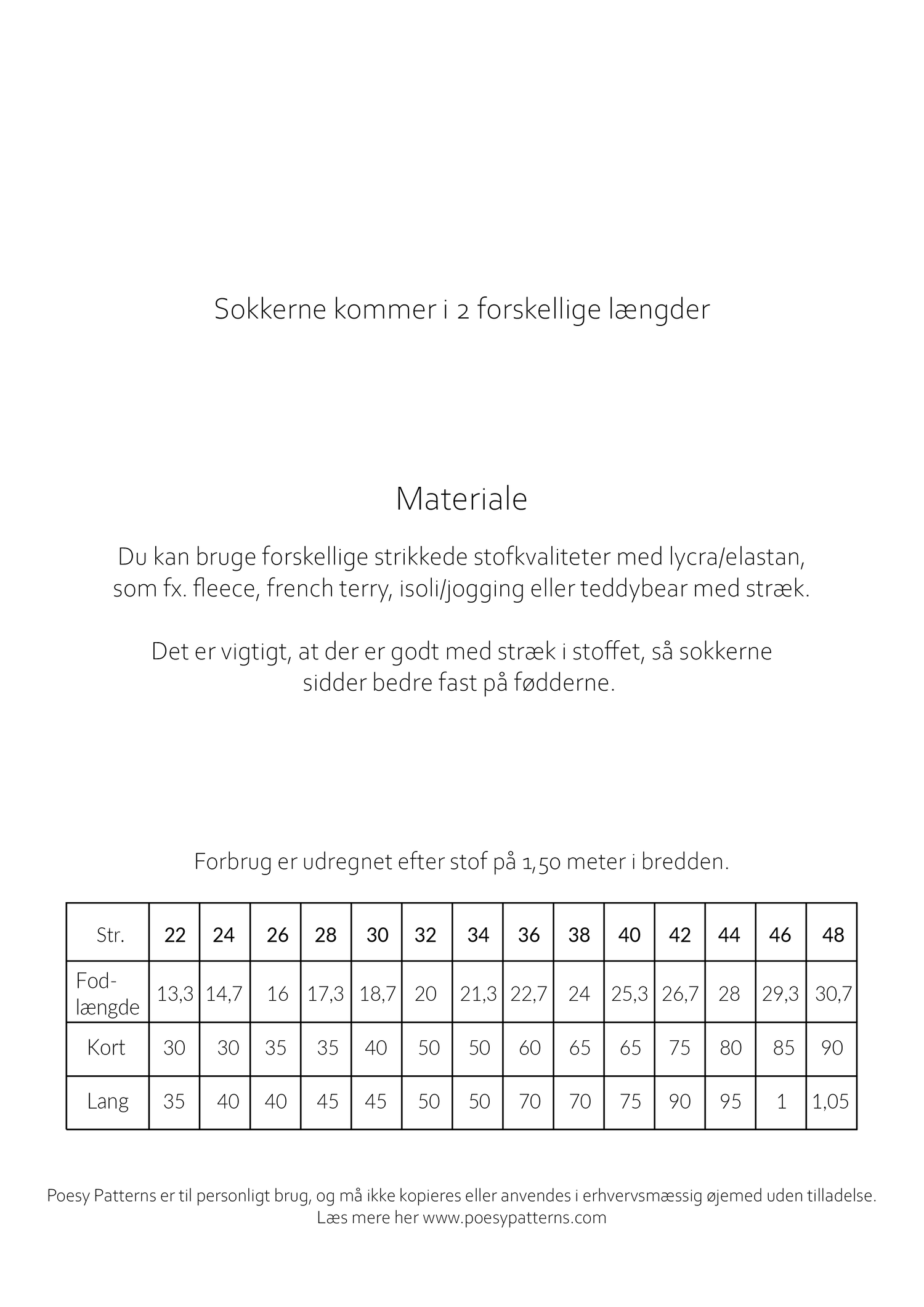 Den endelige størrelse på sokkerne kan ændre sig, hvis stoffet er kraftigere/tyndere eller har mere/mindre stræk.