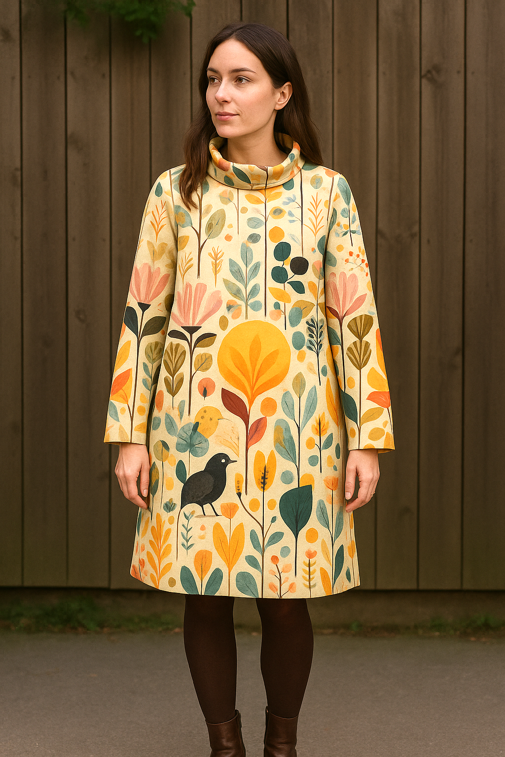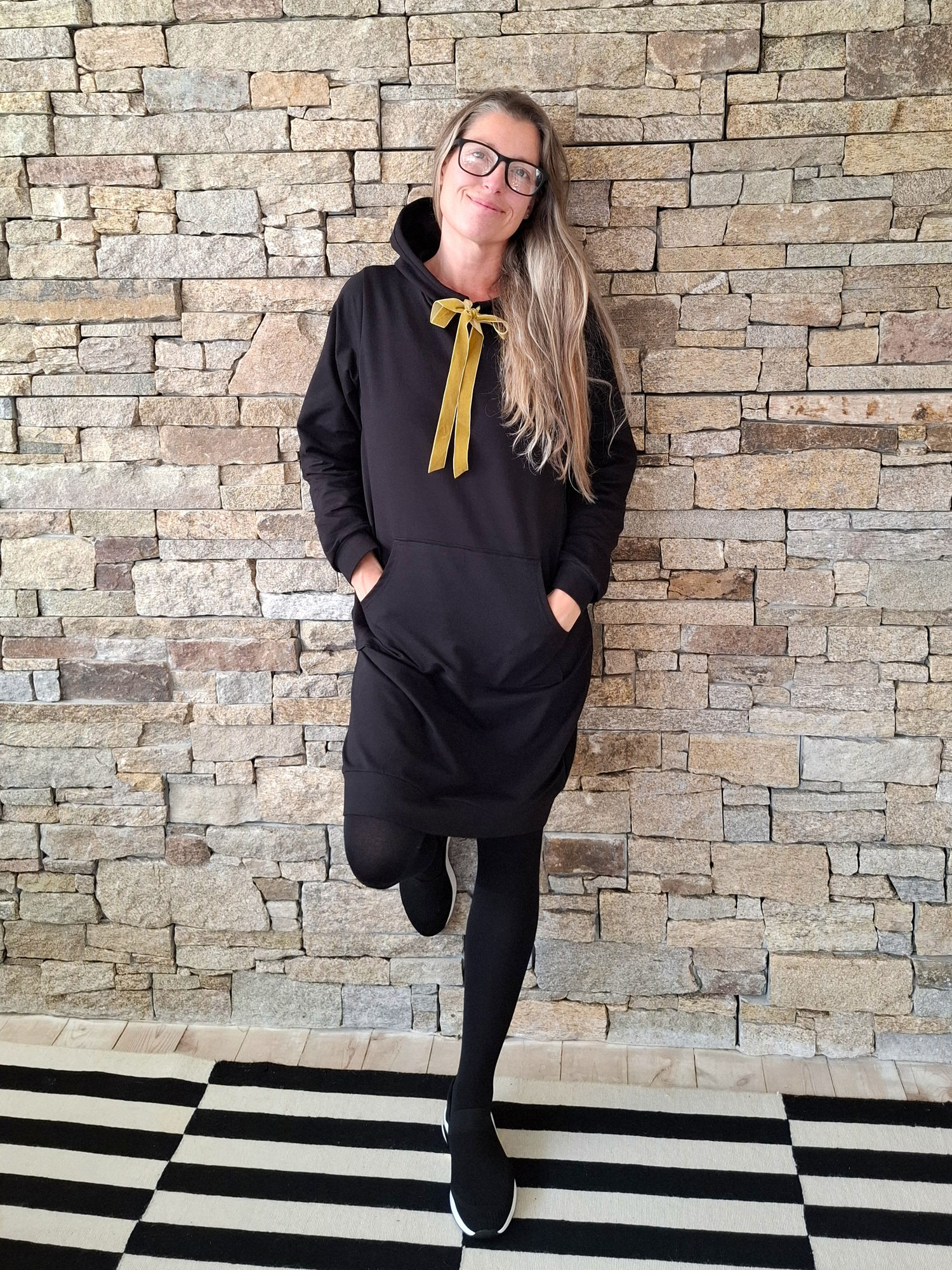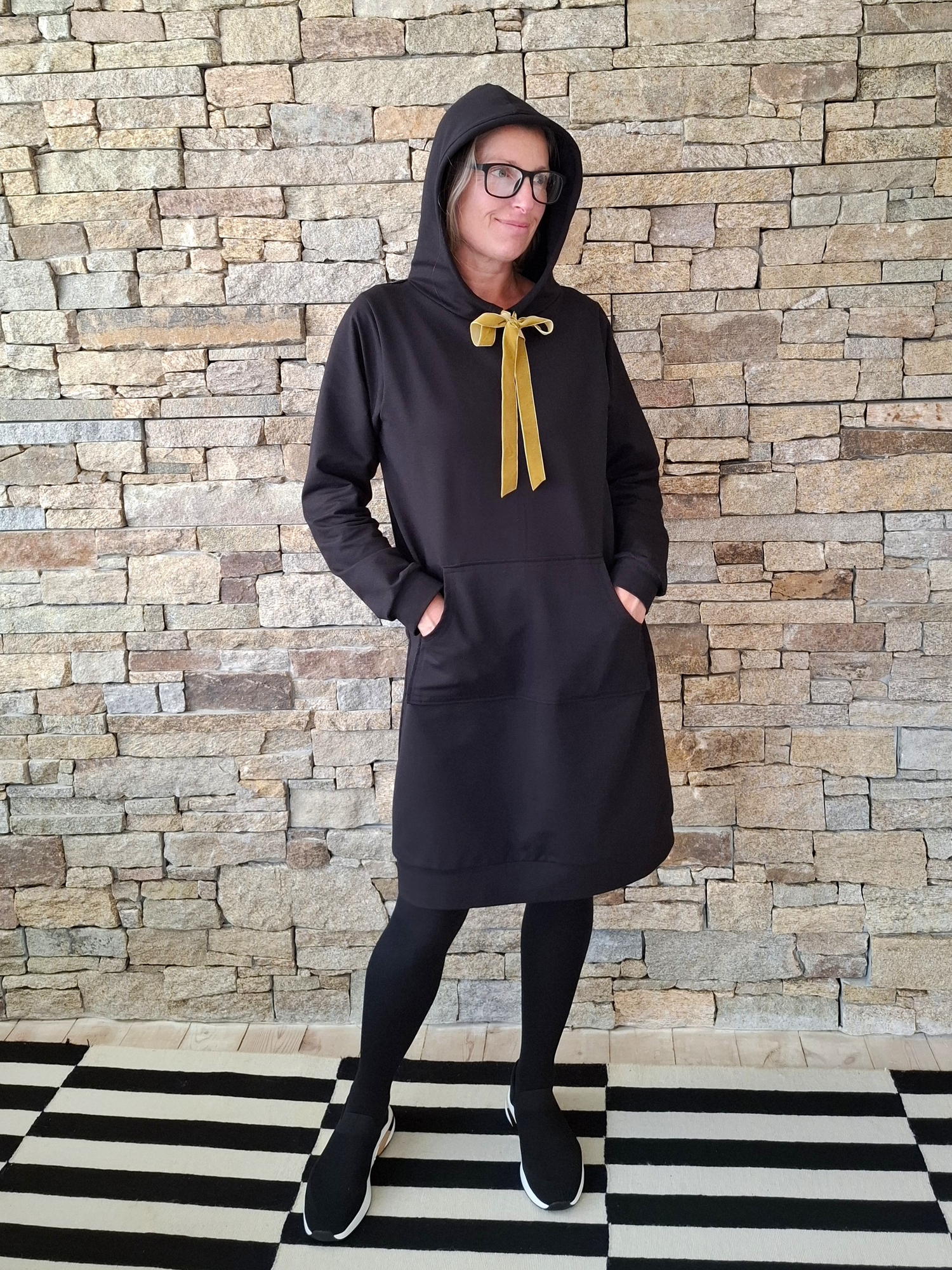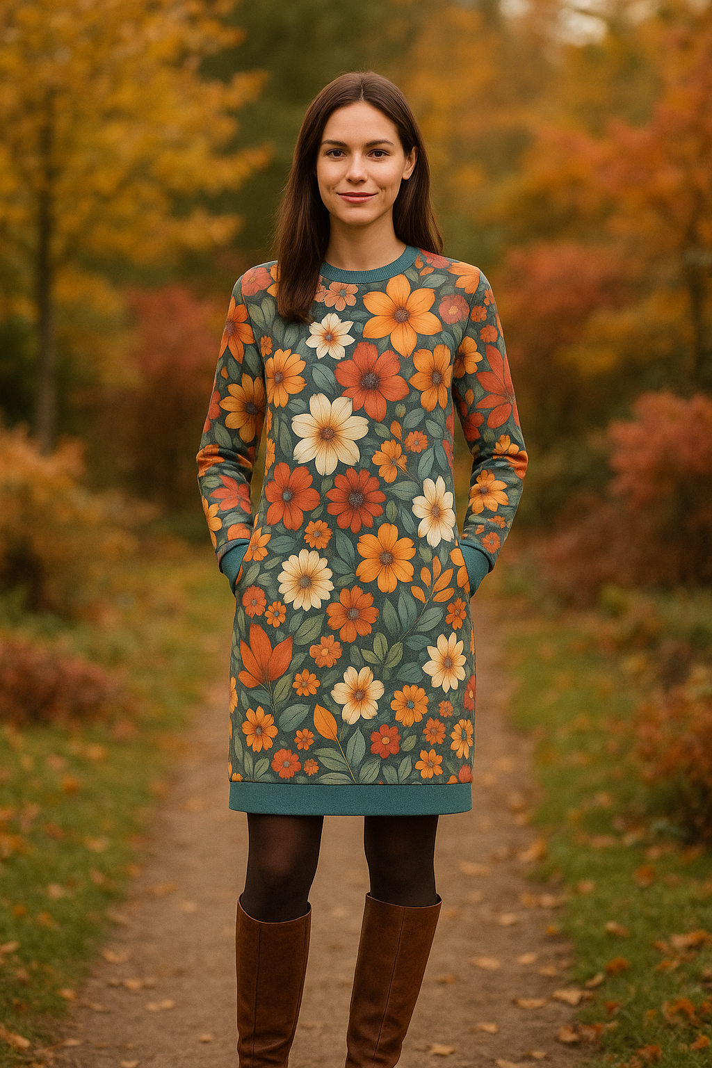 Med dette symønster kan du sy en dejlig lun og behagelig sweatshirtkjole.